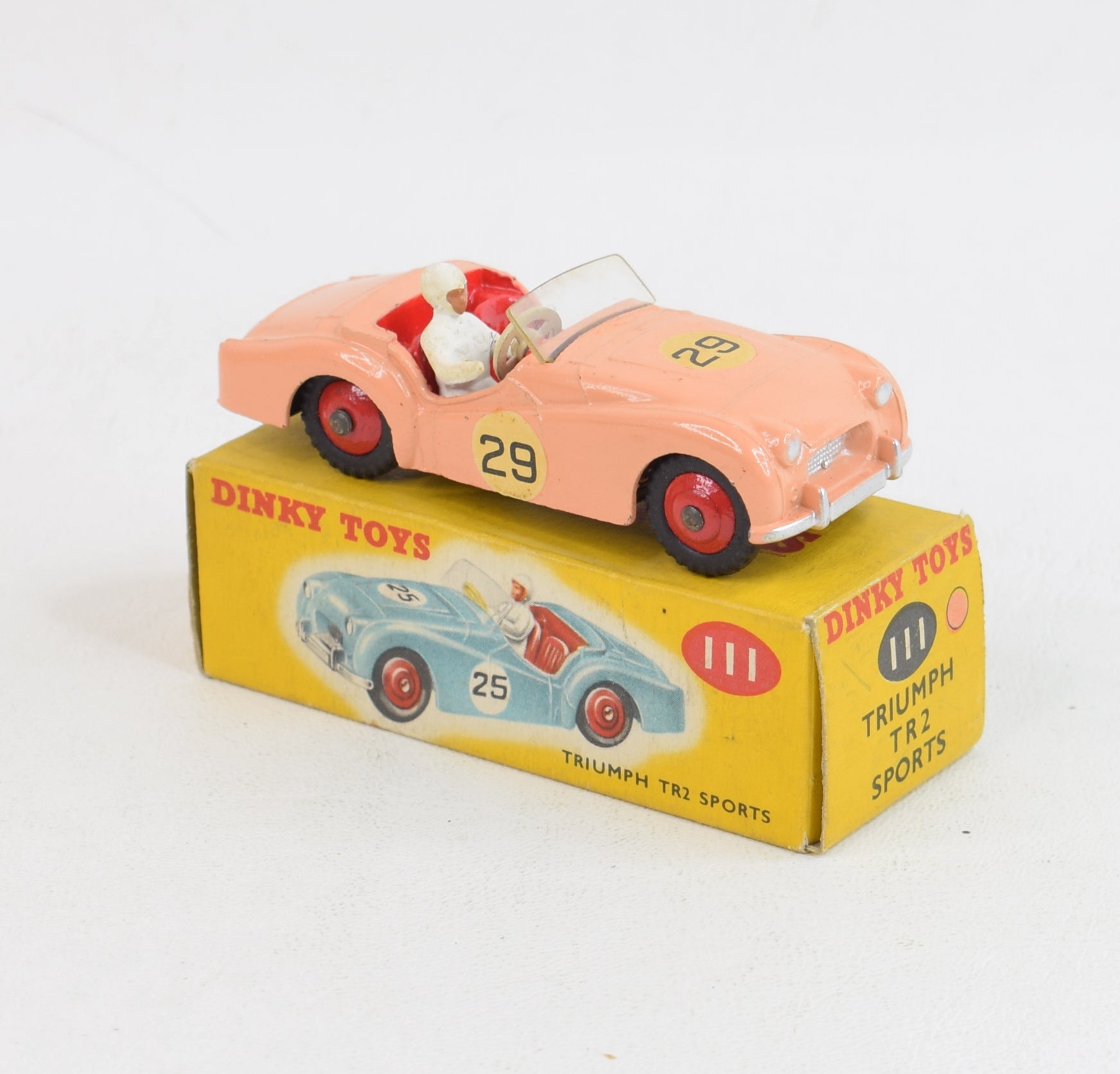 Dinky toys 111 Triumph Tr2 Virtually Mint/Nice box (red hubs/red interior)