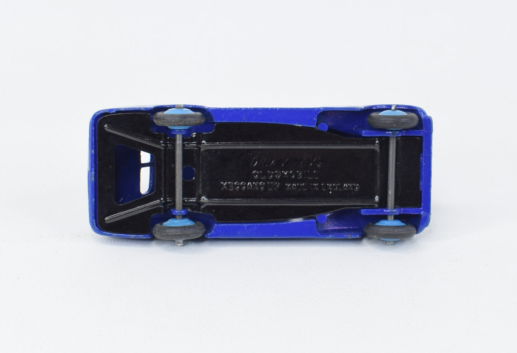This 39b Oldsmobile comes in violet blue & blue ridged hubs, well shaped smooth tyres, baseplate with cut out & exposed rear axle, silver trim & shiny axles. Virtually mint