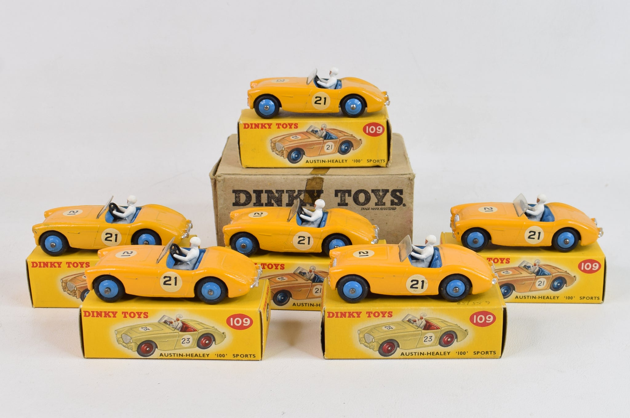 Trade box of 6 Dinky 109 Austin Healey sports cars