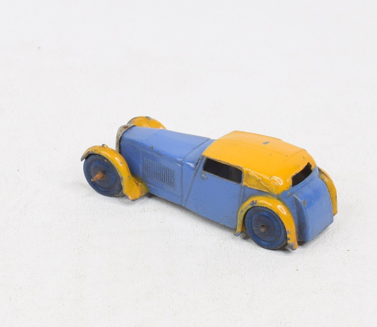 Dinky toys 22b Closed Sports Coupe 1933/35 'Hornby Series' casting to underside of bonnet. This particular example comes in the striking colour arrangement of blue & yellow with blue wash wheels & tin plate radiator. Near mint (Odd little mark)